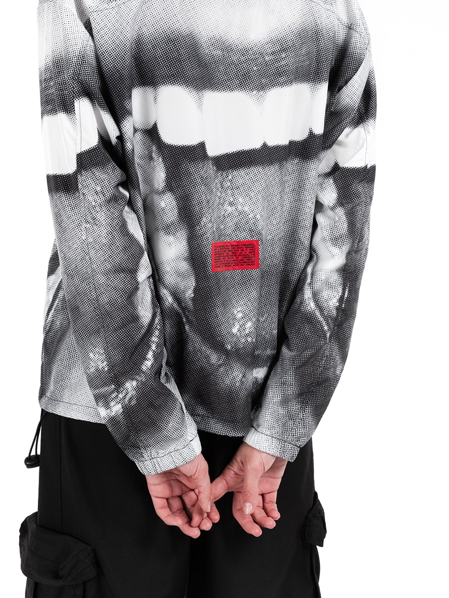 Chiusura con cerniera zip. Stampa a sublimazione e Stampa digitale. Etichetta applicata. Tascone frontale.
