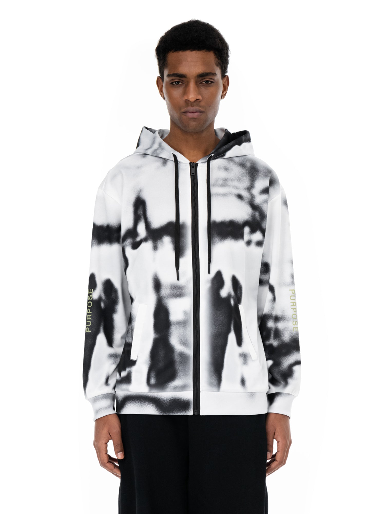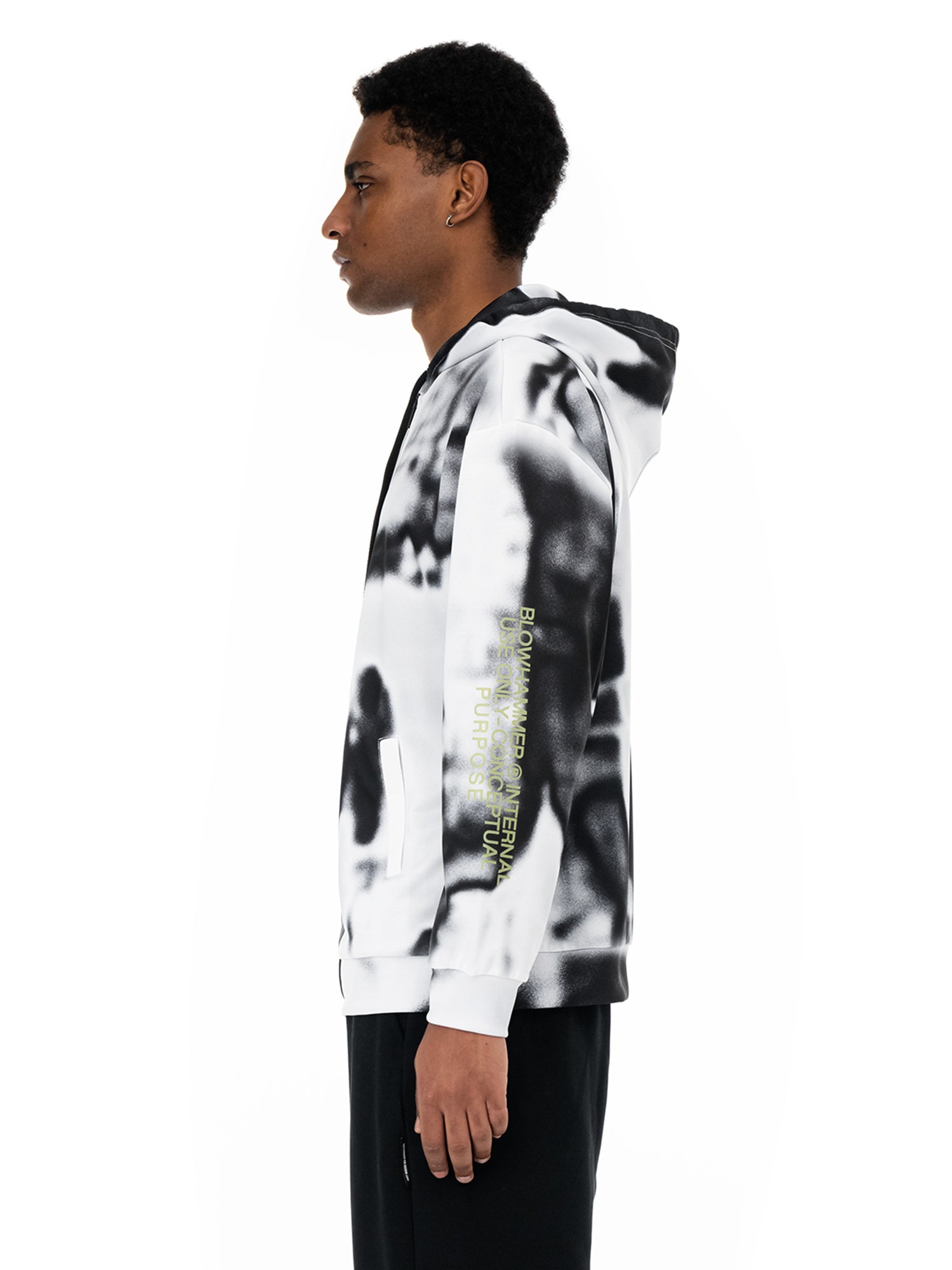 Cappuccio regolabile con laccio. Chiusura con cerniera zip. Stampa digitale e Stampa a sublimazione.