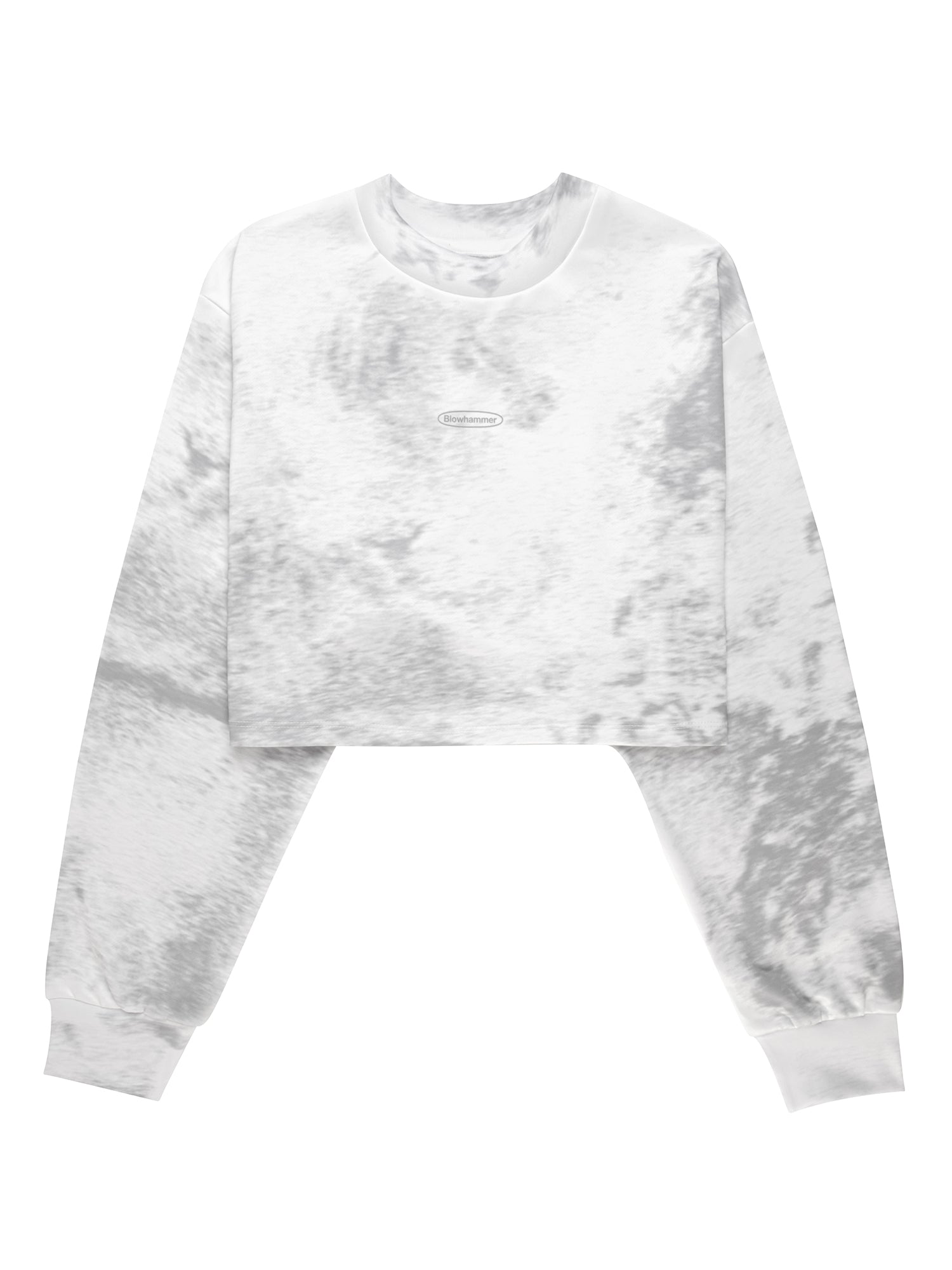 Girocollo. Crop. Maniche lunghe. Finiture a coste. Stampa digitale.