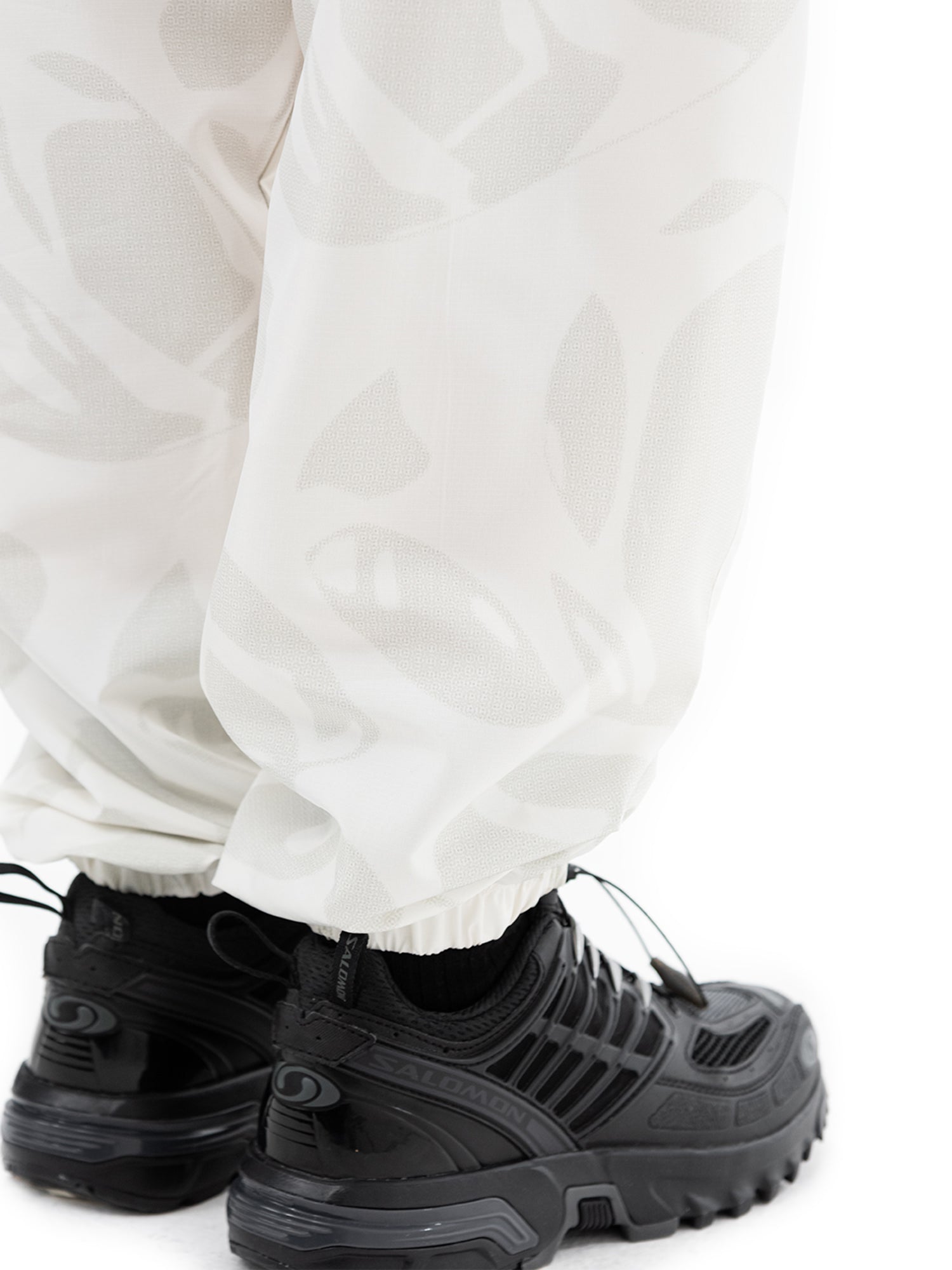 Vita elasticizzata con coulisse. Tasche laterali. Orlo con polsino elastico. Stampa a sublimazione. Etichetta applicata.