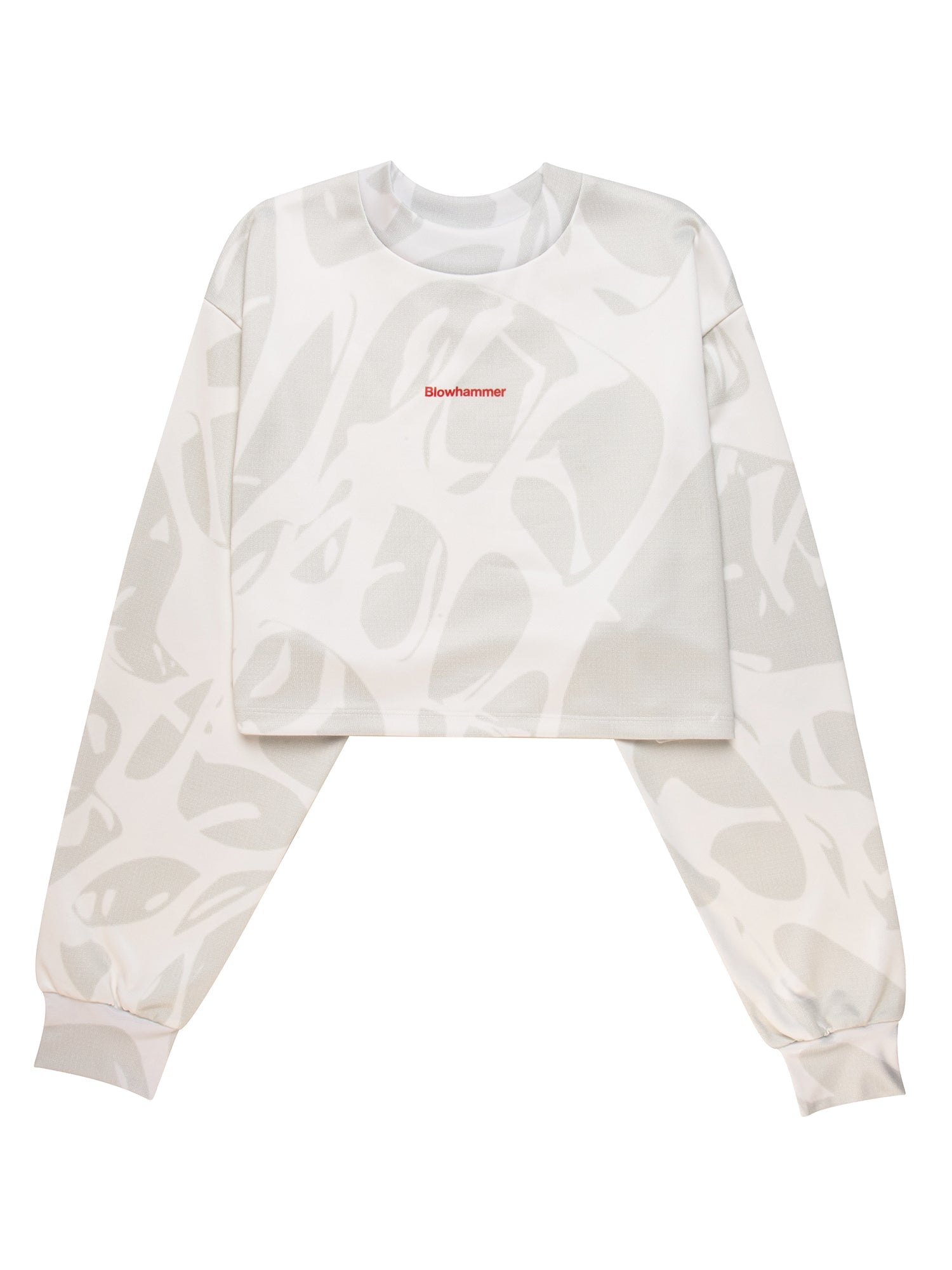 Girocollo. Crop. Maniche lunghe. Finiture a coste. Stampa a sublimazione e Stampa digitale.