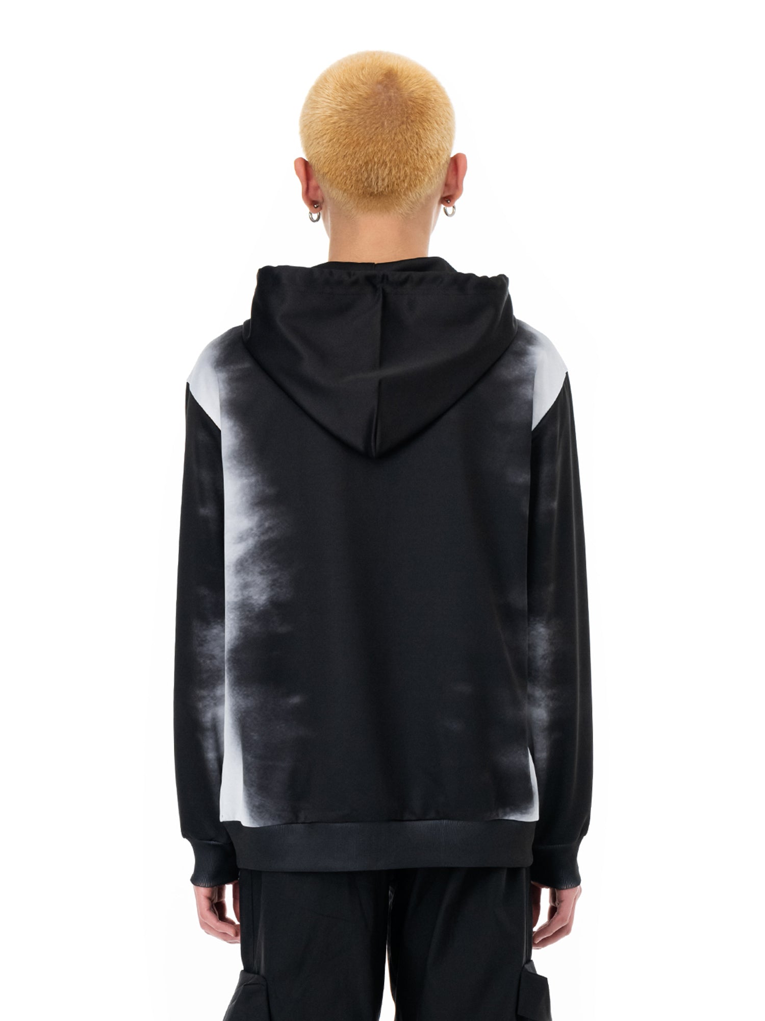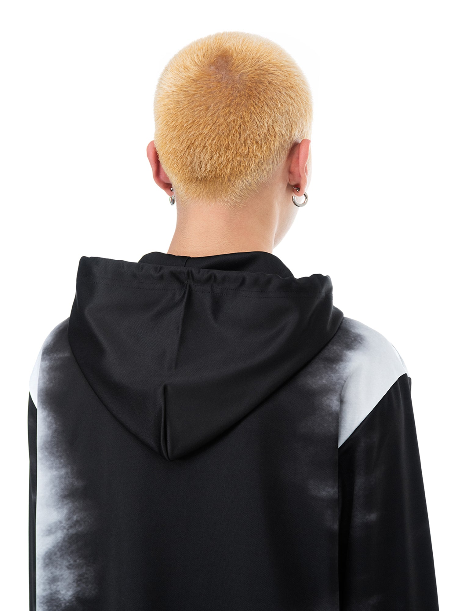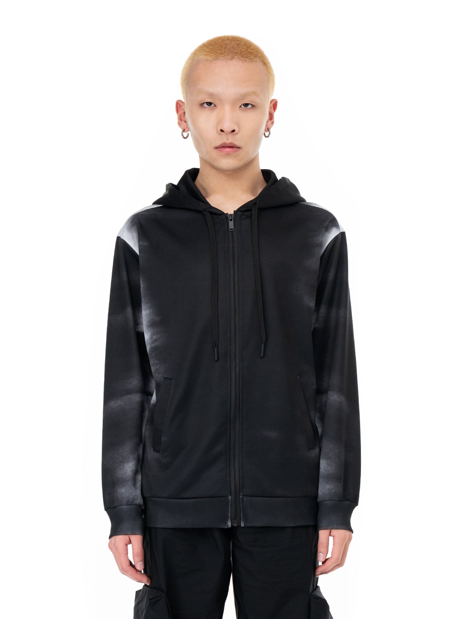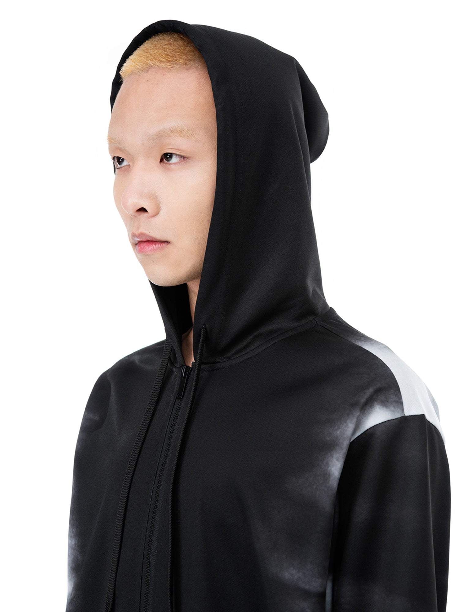 Cappuccio regolabile con laccio. Chiusura con cerniera zip. Stampa a sublimazione.