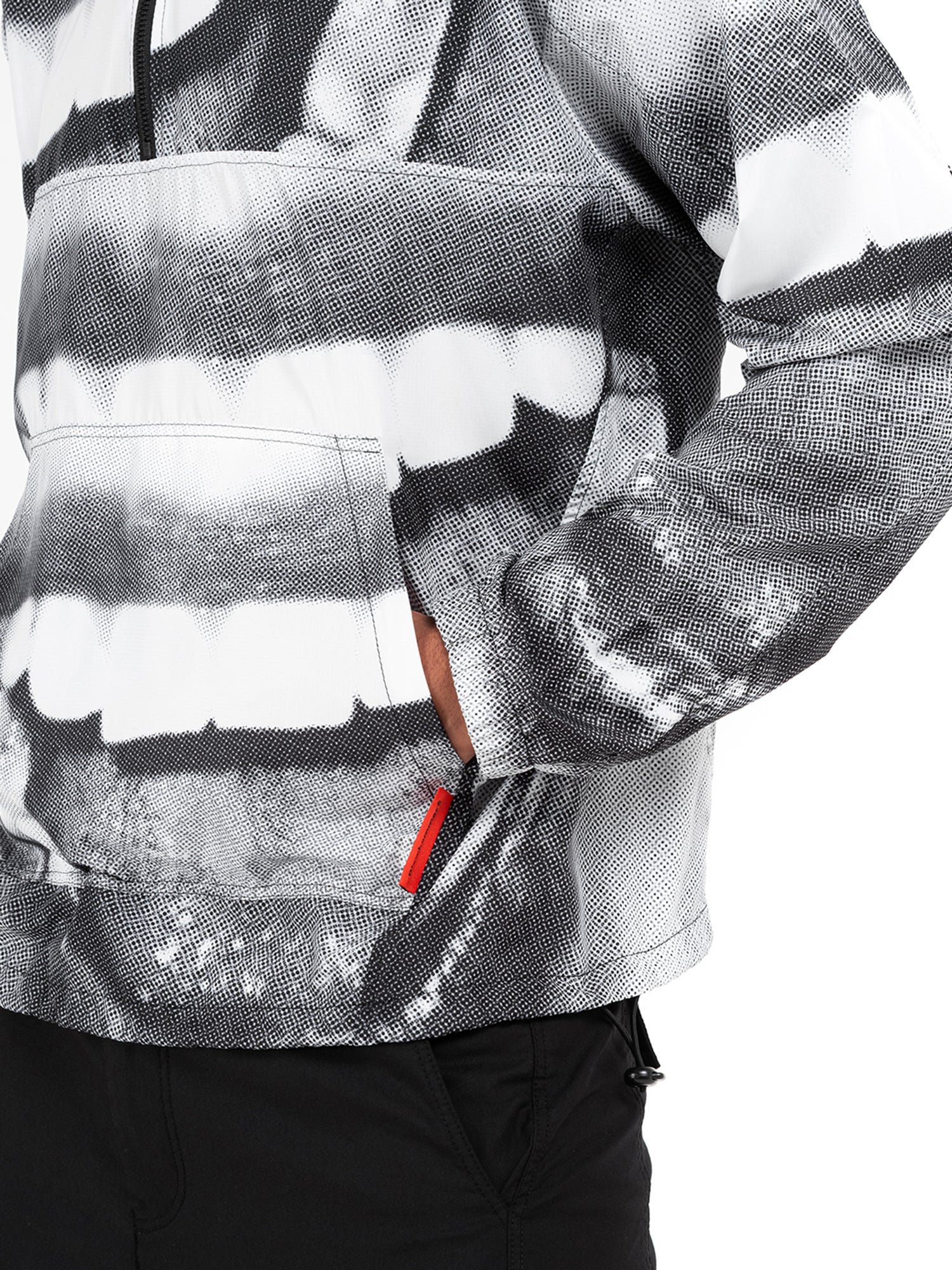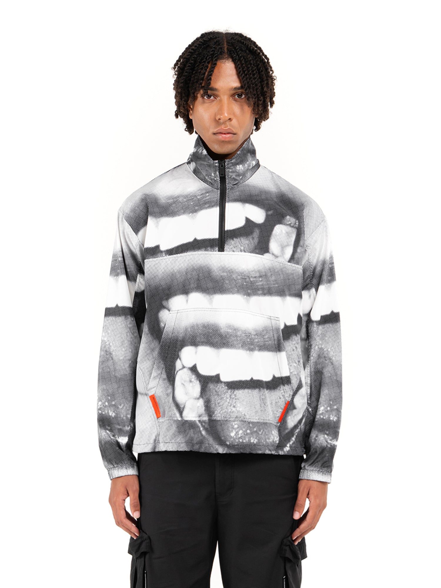 Chiusura con cerniera zip. Stampa a sublimazione e Stampa digitale. Etichetta applicata. Tascone frontale.