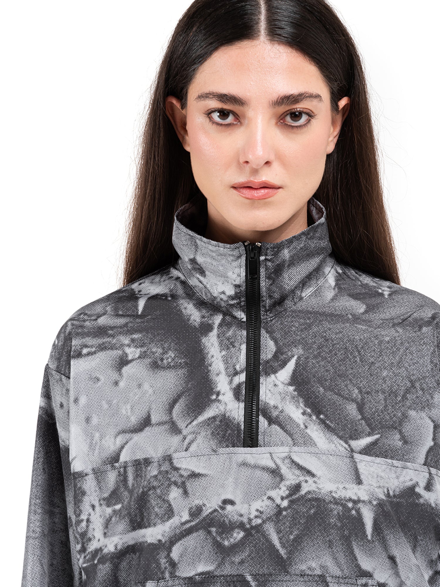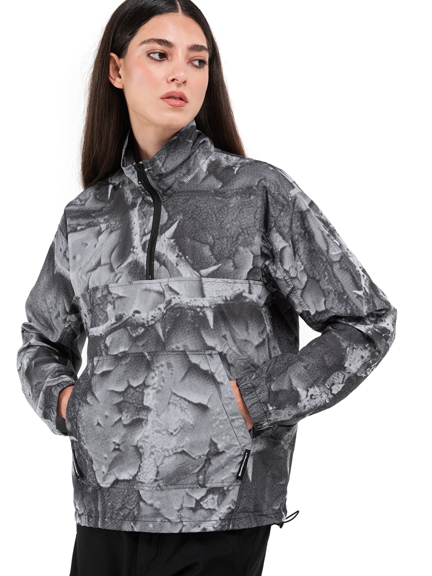 Chiusura con cerniera zip. Stampa a sublimazione e Stampa digitale. Etichetta applicata. Tascone frontale.