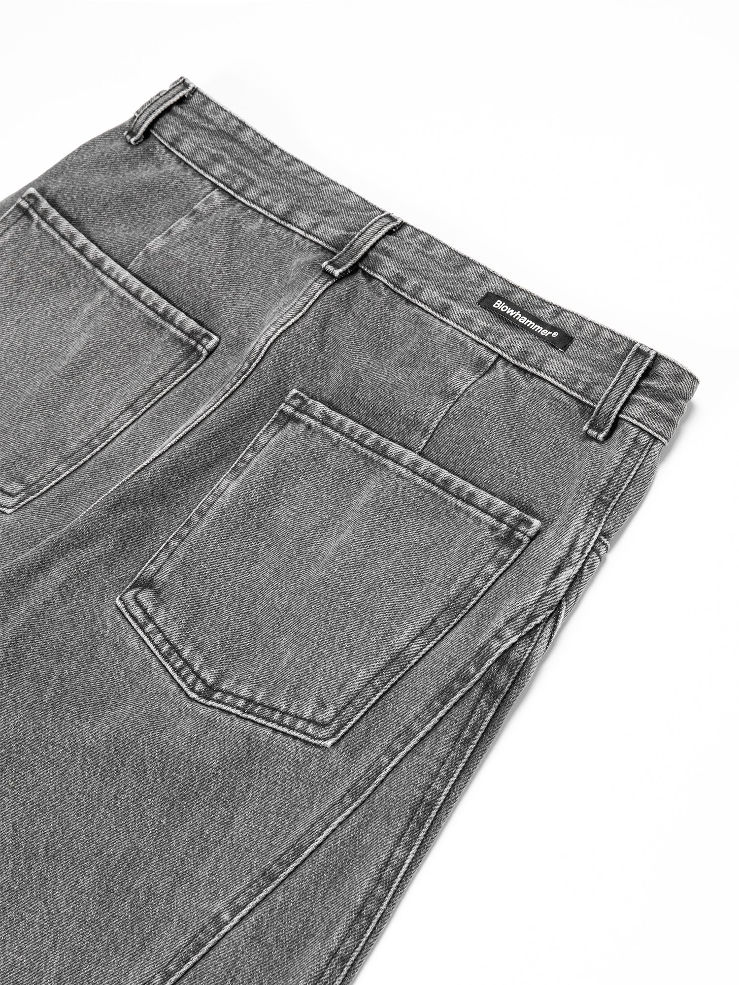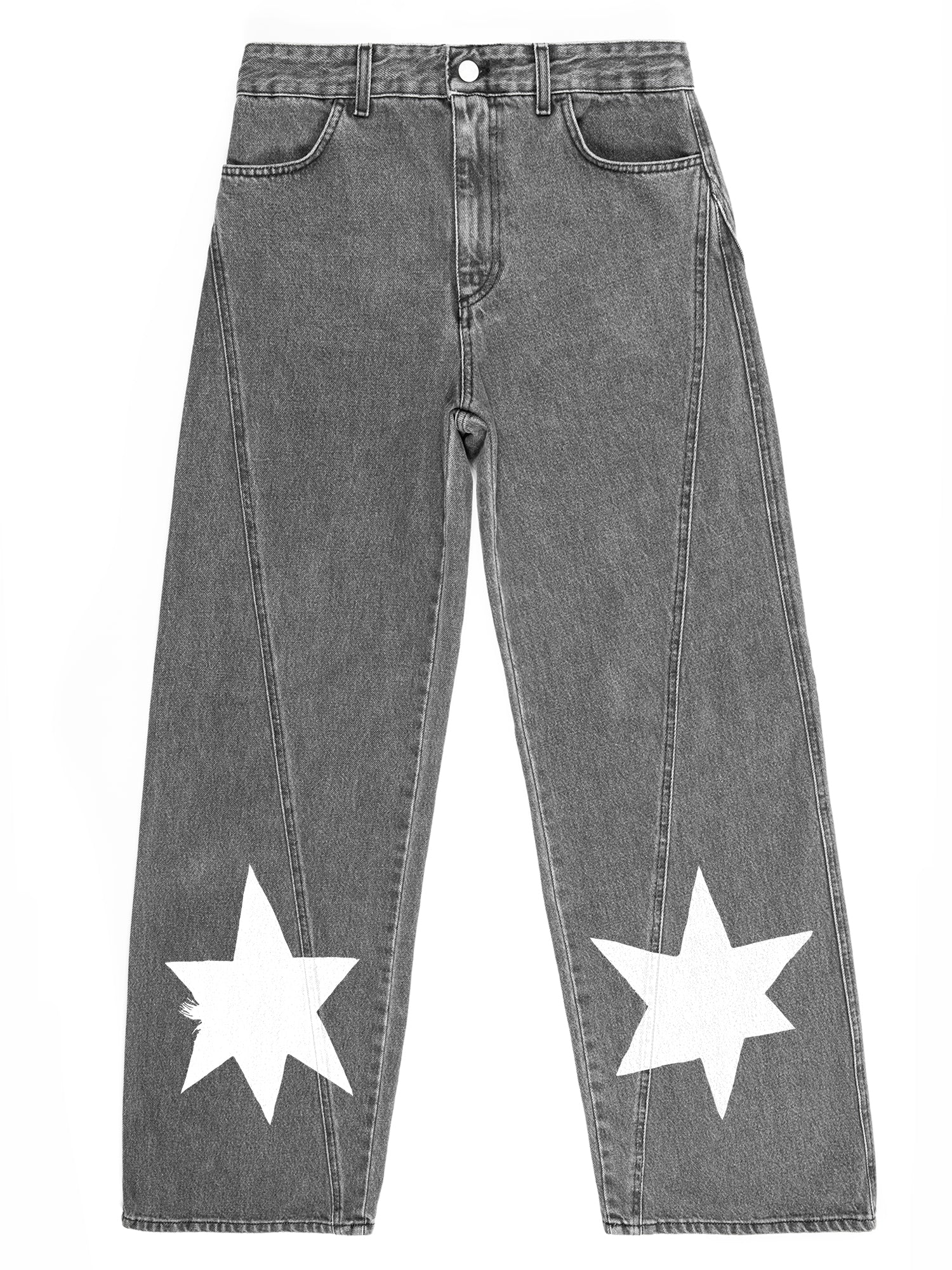 Double stonewash denim. Regular waist. Belt loops. 4 pockets. Zip and button closure. 100% cotton. Straight fit, versatile. No unnecessary details.