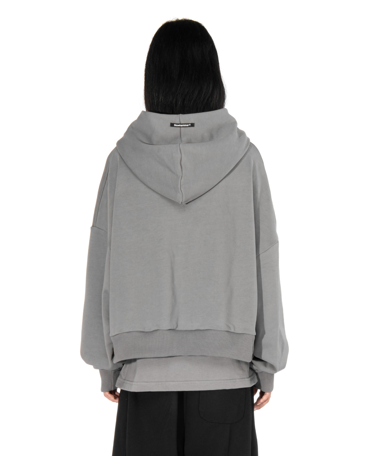 Cappuccio, maniche lunghe, chiusura frontale con Zip, due tasche laterali. Spilla "BROKENHEART ". Etichetta applicata.