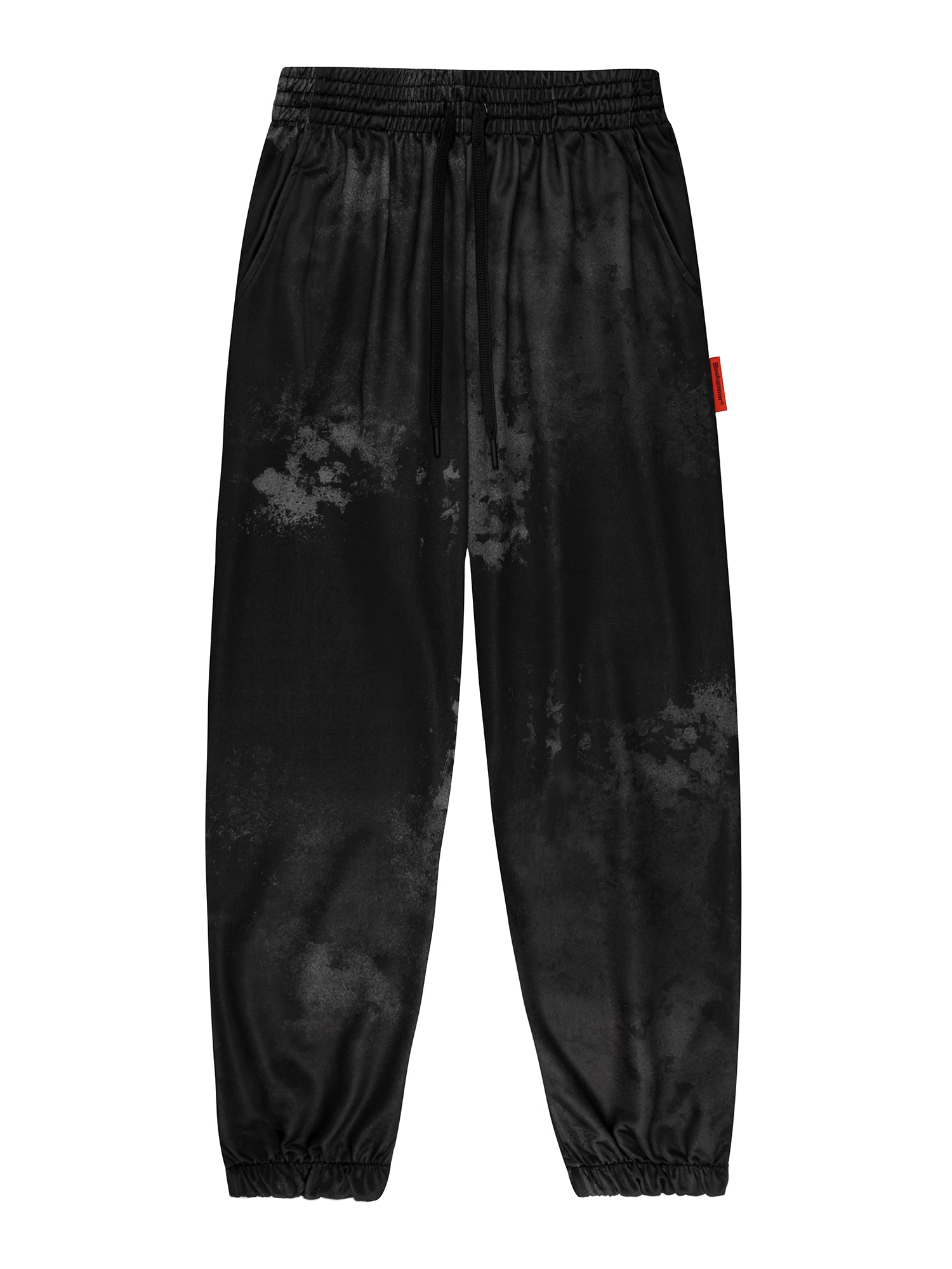 Vita elasticizzata con coulisse. Tasche laterali. Orlo con polsino elastico. Stampa a sublimazione ed Etichetta applicata.