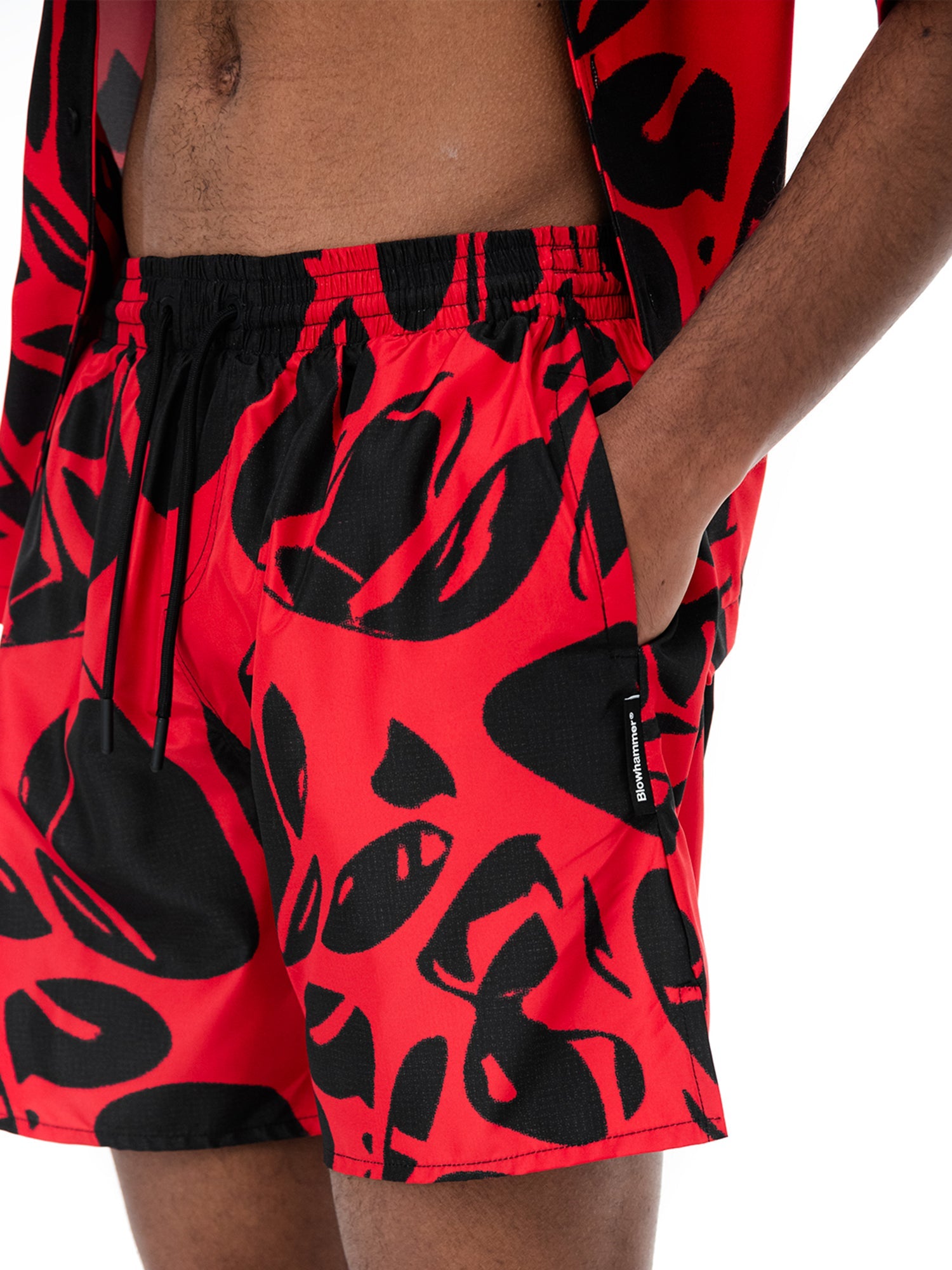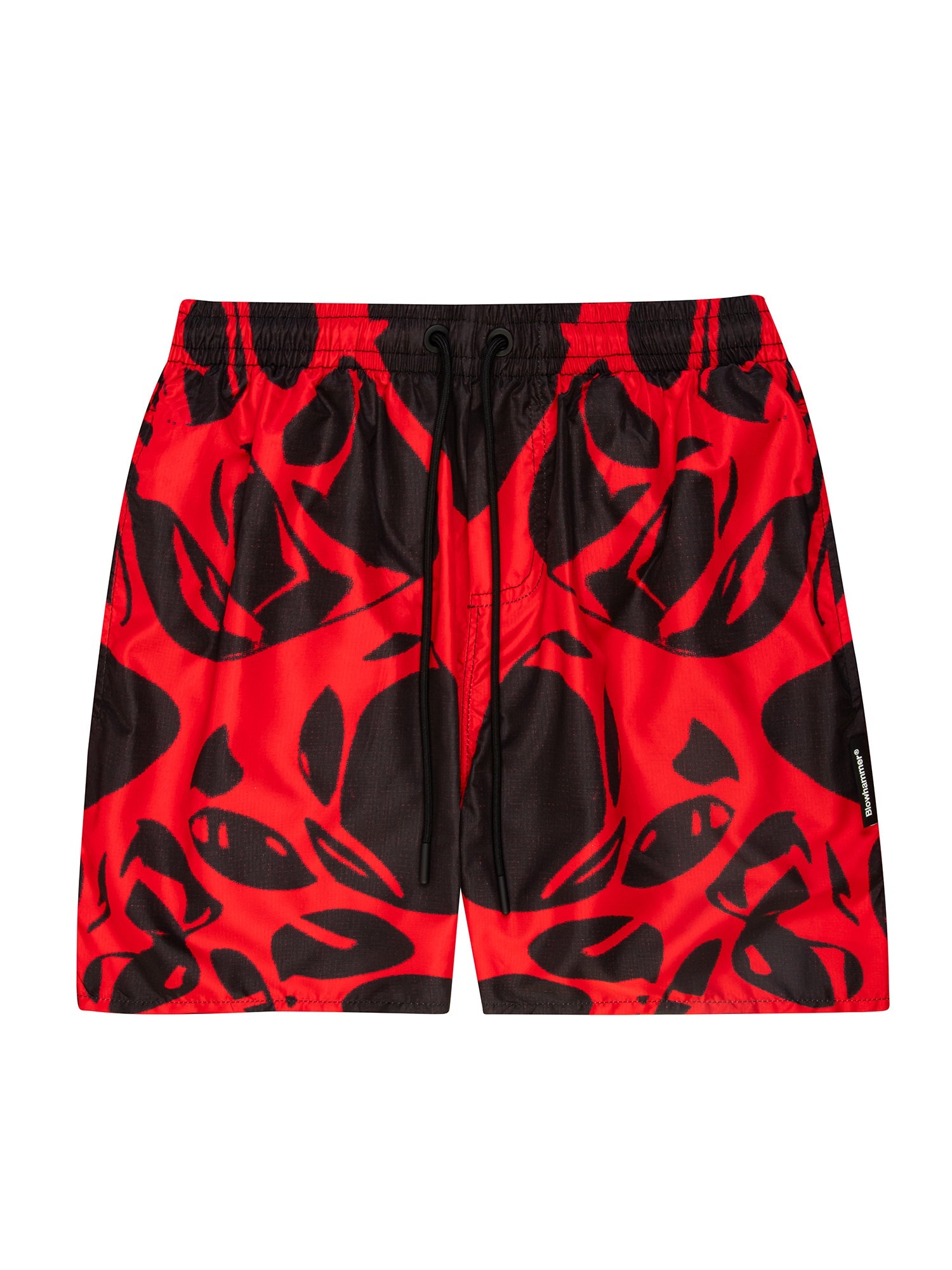 Vita elasticizzata con coulisse. Tasche laterali. Retina interna. Stampa a sublimazione ed Etichetta applicata.